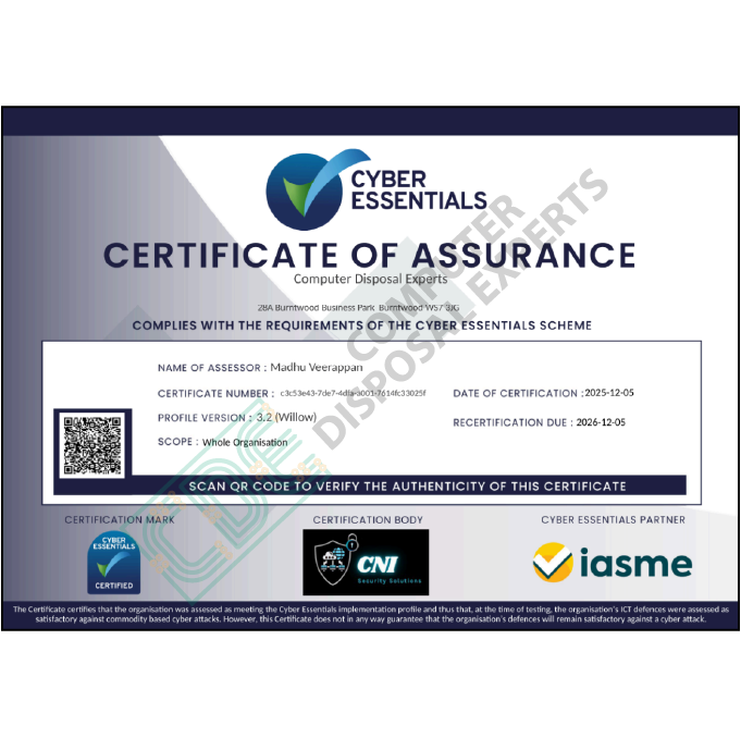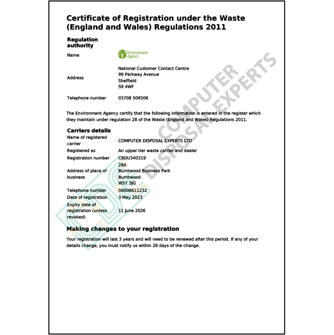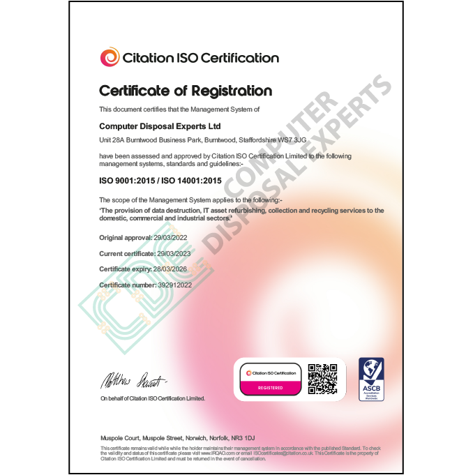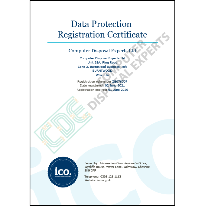 Here at Computer Disposal Experts, we can handle your WEEE requirements, our business model is based on the simple aspect of reusing and refurbishing as much as possible.
